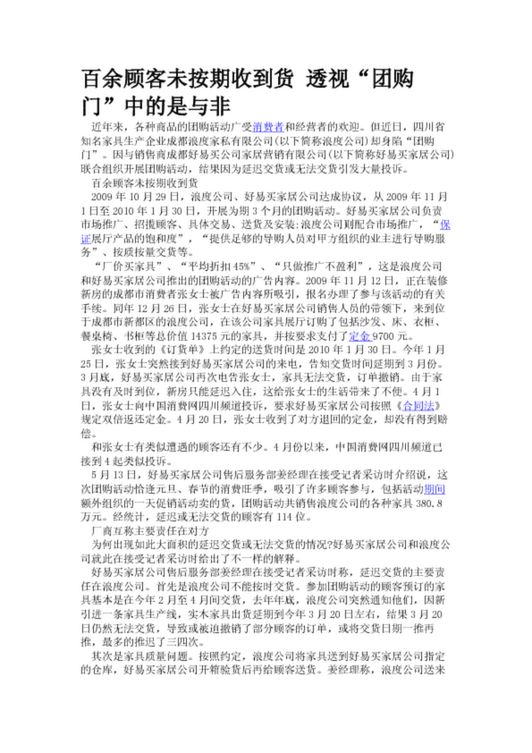 百余顧客未按期收到貨 透視“團購門”中的是與非