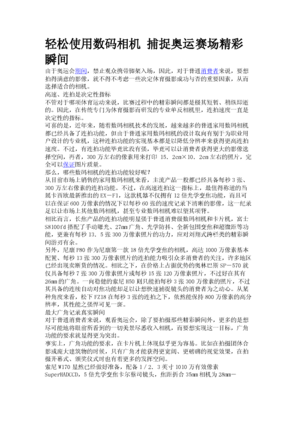 輕松使用數碼相機 捕捉奧運賽場精彩瞬間