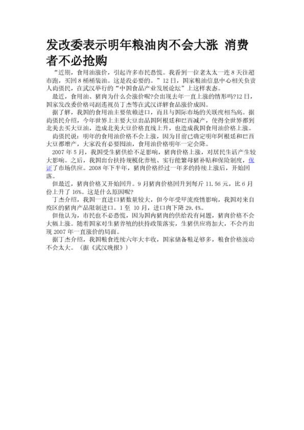 發(fā)改委表示明年糧油肉不會(huì)大漲 消費(fèi)者不必?fù)屬?/a>