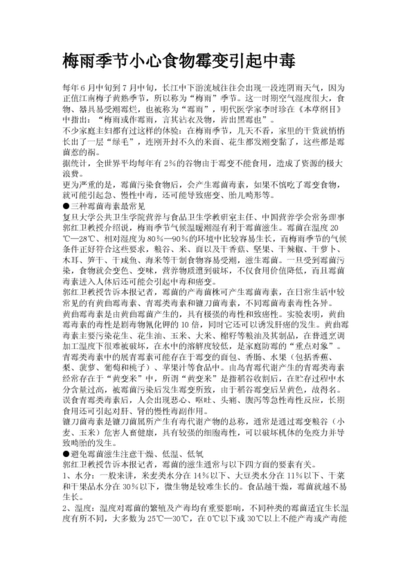 梅雨季節小心食物霉變引起中毒(23.45KB)