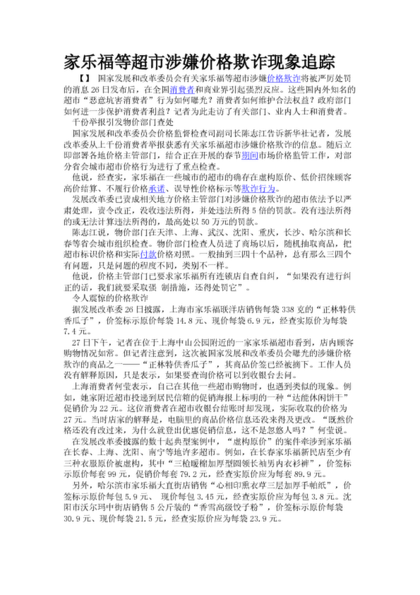 家樂福等超市涉嫌價格欺詐現(xiàn)象追蹤