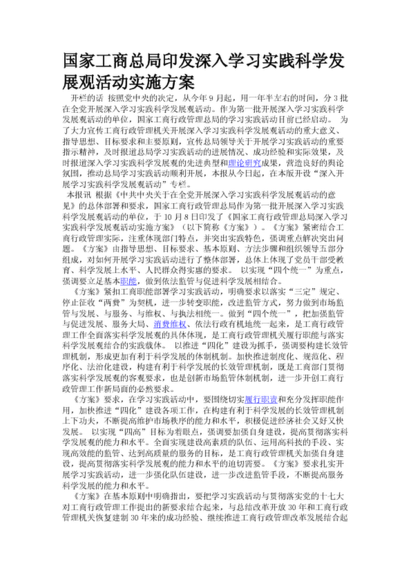 國家工商總局印發深入學習實踐科學發展觀活動實施方案(22.55KB)