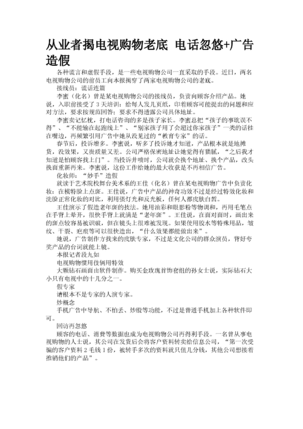 從業者揭電視購物老底 電話忽悠+廣告造假