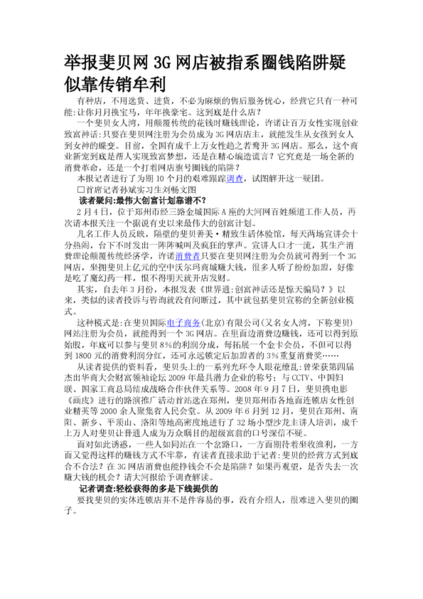 舉報斐貝網(wǎng)3G網(wǎng)店被指系圈錢陷阱疑似靠傳銷牟利