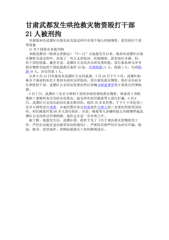 甘肅武都發生哄搶救災物資毆打干部 21人被刑拘