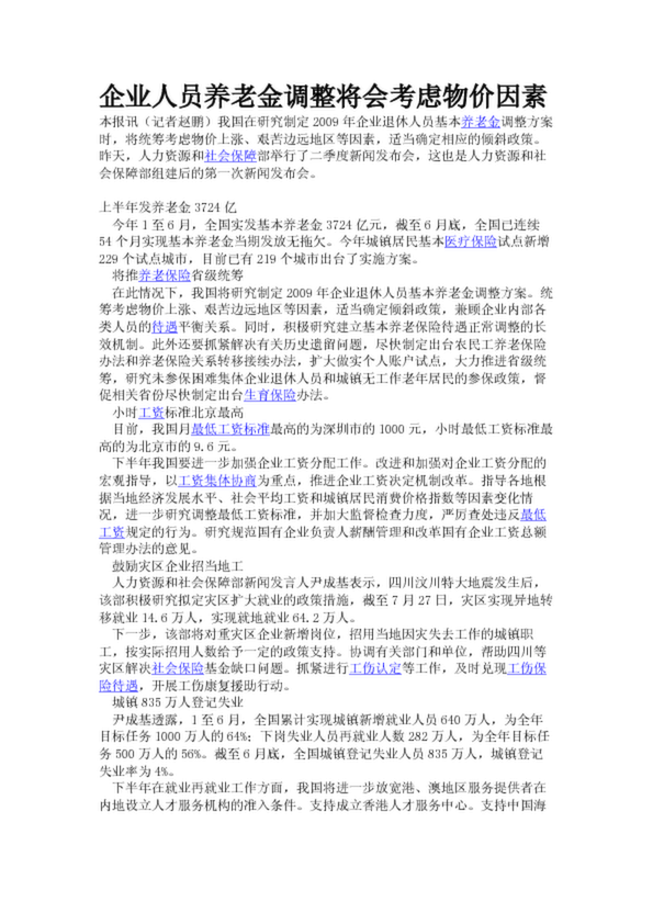 企業(yè)人員養(yǎng)老金調(diào)整將會(huì)考慮物價(jià)因素
