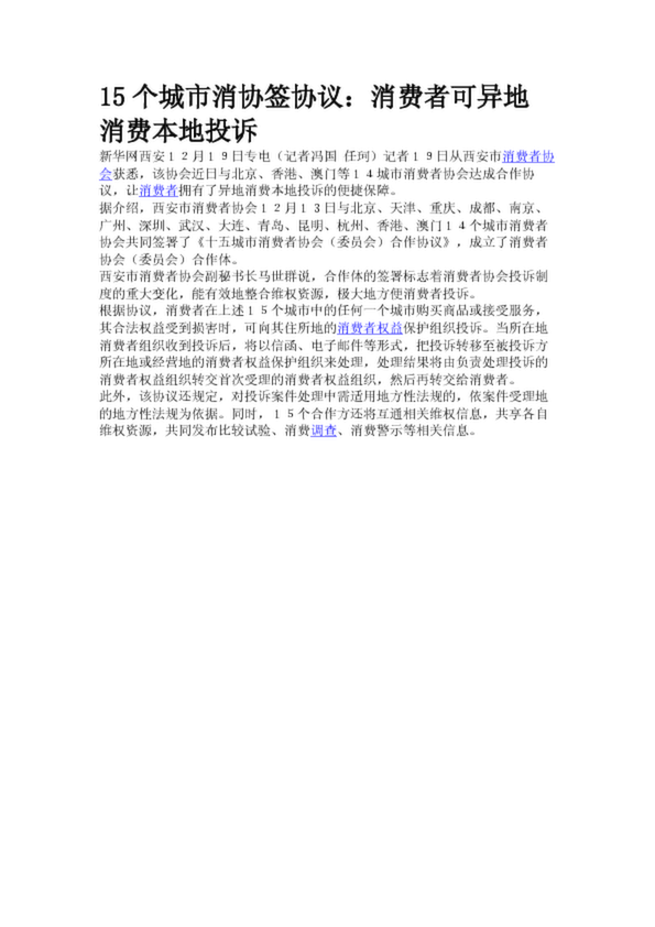 15個城市消協簽協議:消費者可異地消費本地投訴