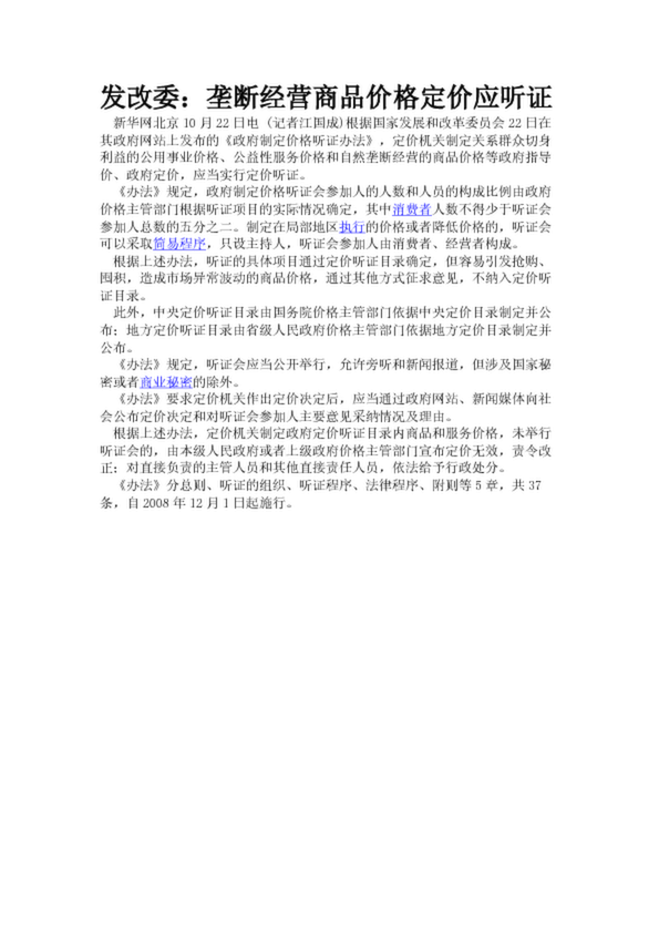 發改委:壟斷經營商品價格定價應聽證(19.22KB)