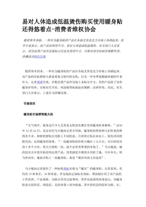 易對人體造成低溫燙傷購買使用暖身貼還得悠著點(diǎn)-消費(fèi)者維權(quán)協(xié)會