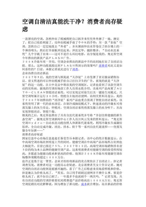 空調自清潔真能洗干凈?消費者尚存疑慮(25.29KB)