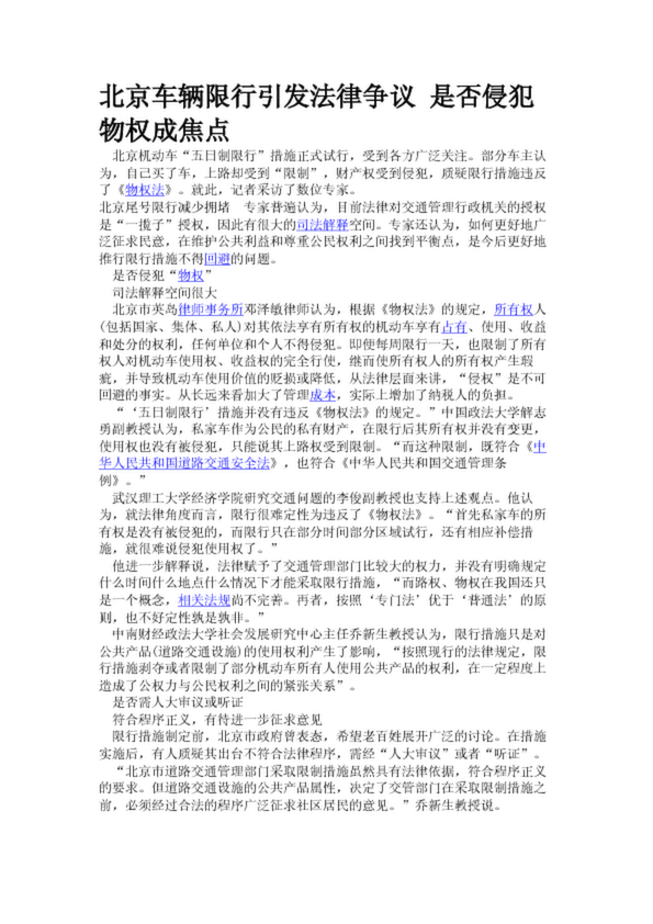 北京車輛限行引發法律爭議 是否侵犯物權成焦點