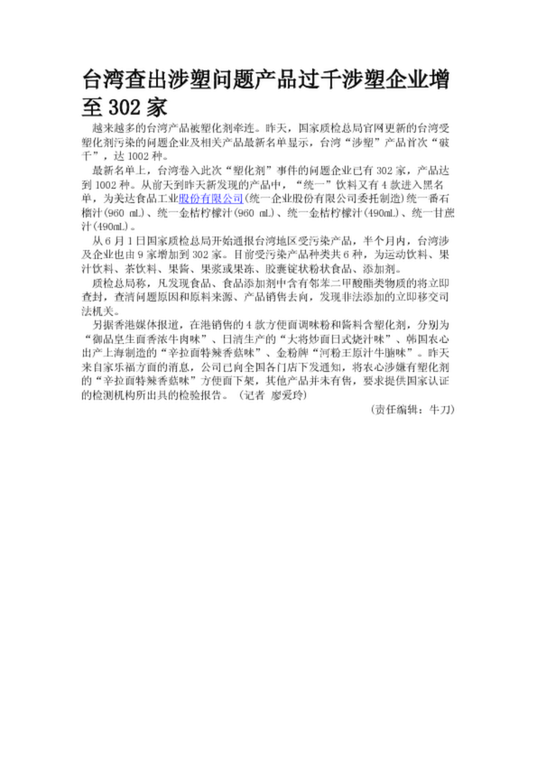 臺(tái)灣查出涉塑問(wèn)題產(chǎn)品過(guò)千涉塑企業(yè)增至302家(17.88KB)