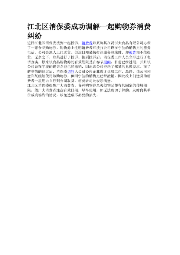 江北區(qū)消保委成功調(diào)解一起購(gòu)物券消費(fèi)糾紛