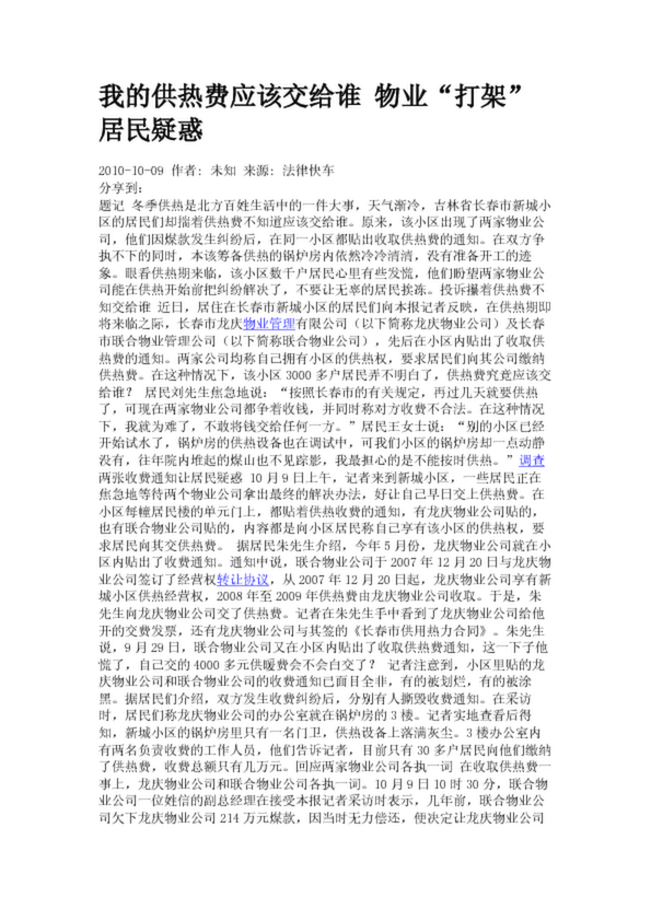 我的供熱費(fèi)應(yīng)該交給誰(shuí) 物業(yè)“打架”居民疑惑