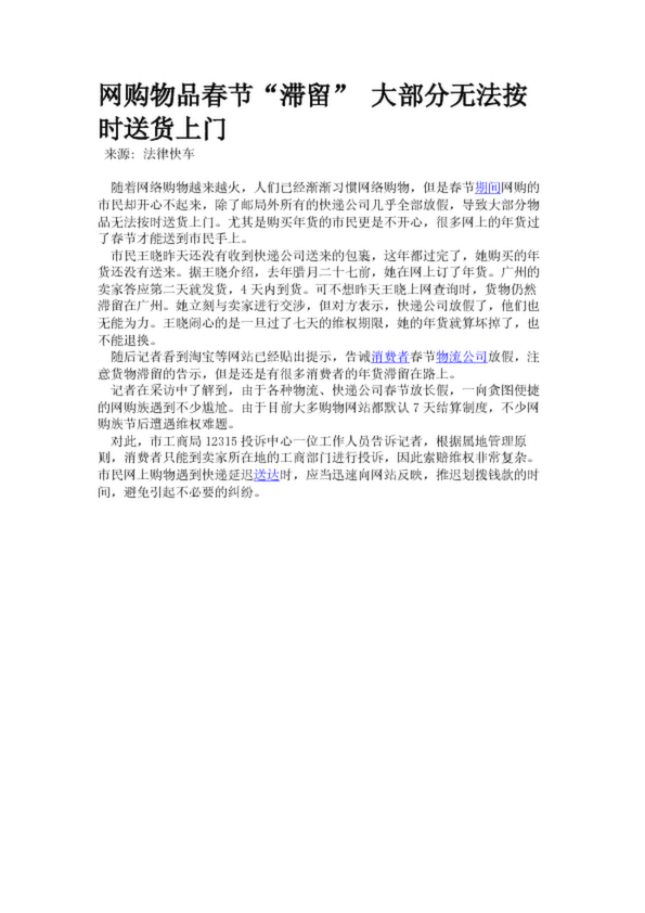 網(wǎng)購物品春節(jié)“滯留” 大部分無法按時送貨上門