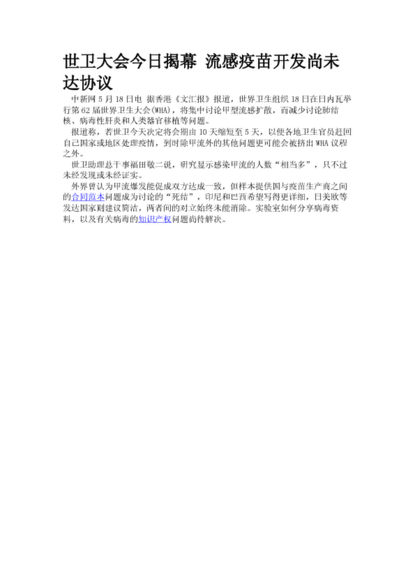 世衛(wèi)大會今日揭幕 流感疫苗開發(fā)尚未達協(xié)議(17.05KB)