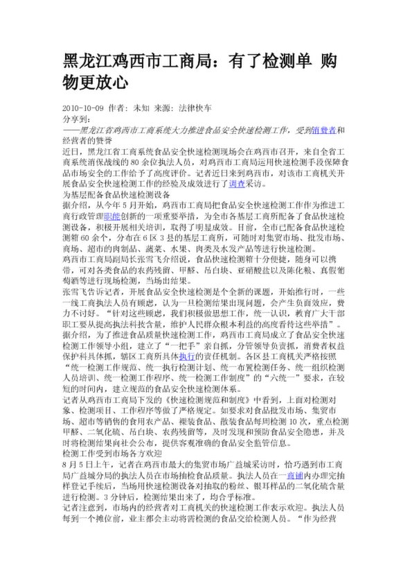 黑龍江雞西市工商局:有了檢測單 購物更放心(6.34KB)
