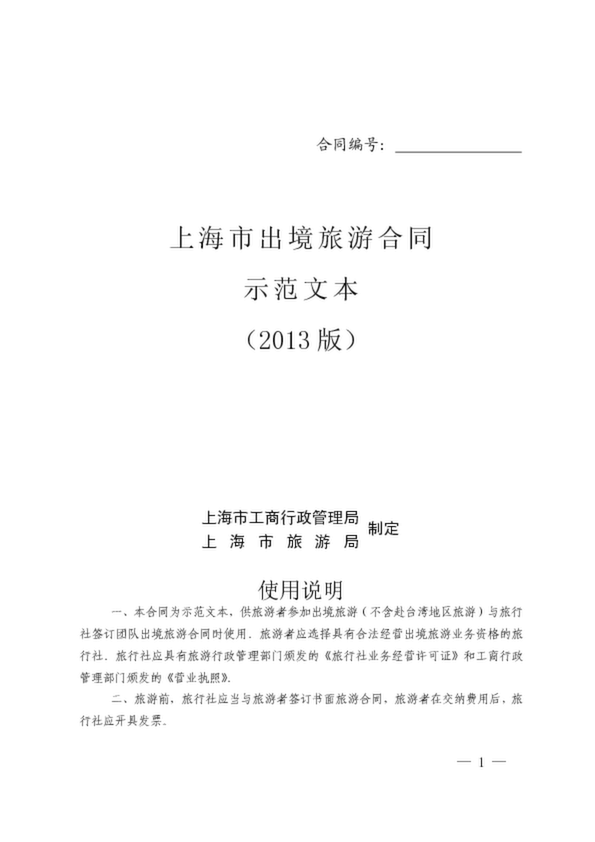上海市出境旅游合同示范文本(2013版)