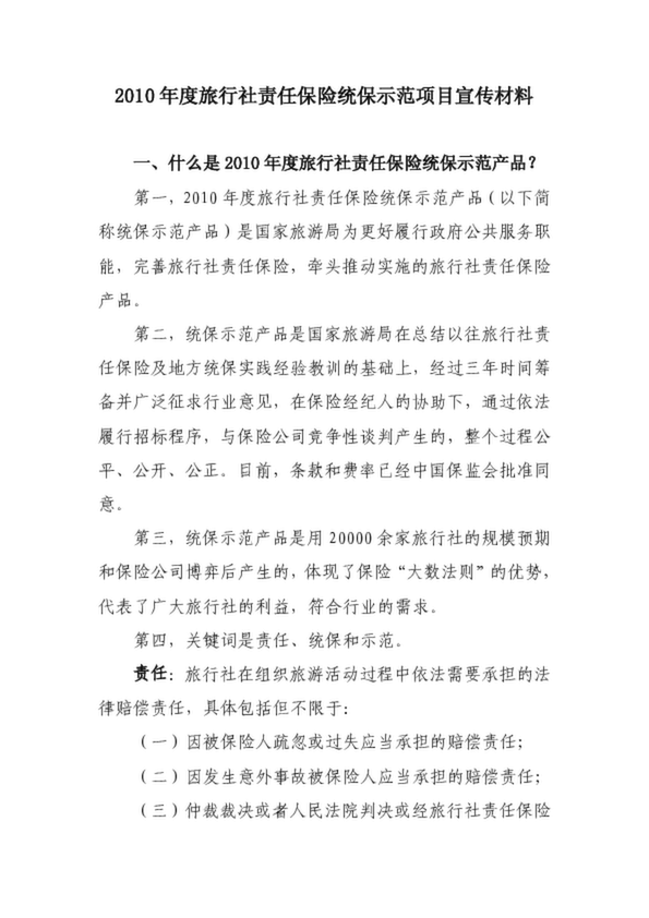 2010年度旅行社責任保險統保示范項目宣傳材料下載