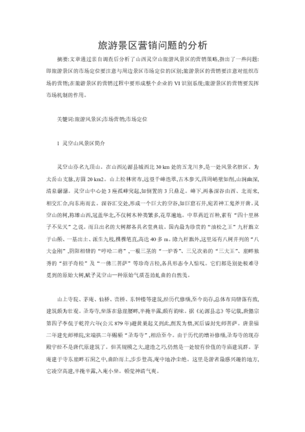 旅游景區營銷問題的分析