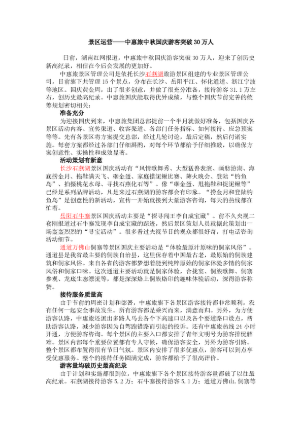 景區(qū)運(yùn)營——中惠旅中秋國慶游客突破30萬人