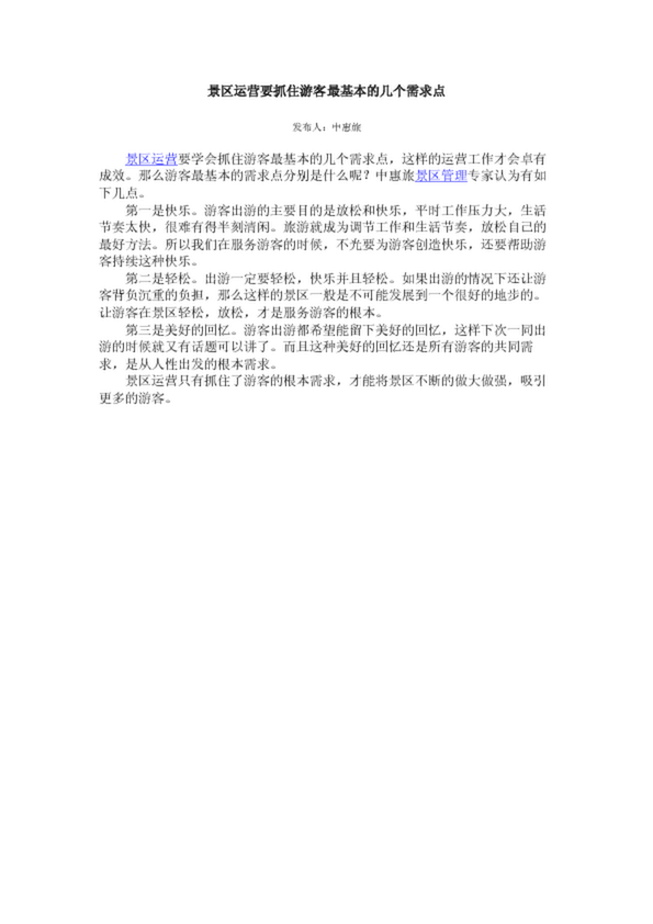 景區(qū)運(yùn)營(yíng)要抓住游客最基本的幾個(gè)需求點(diǎn)