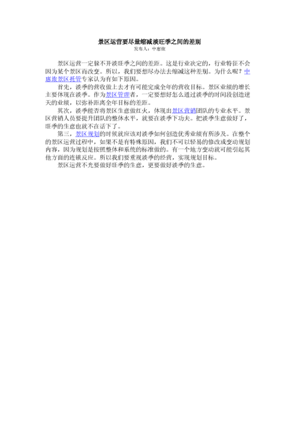 景區(qū)運(yùn)營(yíng)要盡量縮減淡旺季之間的差別