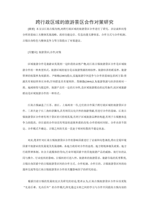 跨行政區域的旅游景區合作對策研究