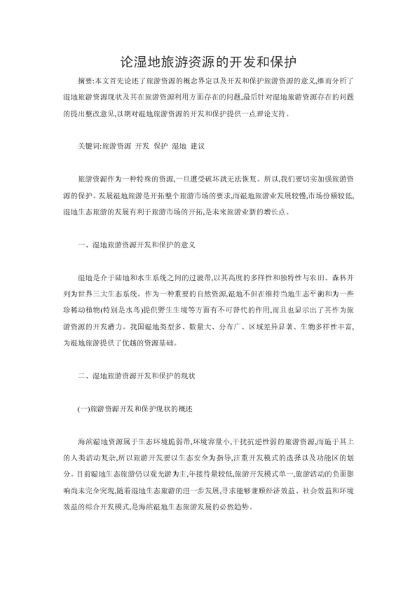 論濕地旅游資源的開發和保護