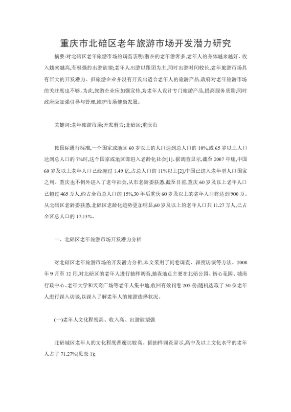 重慶市北碚區老年旅游市場開發潛力研究(0.18MB)