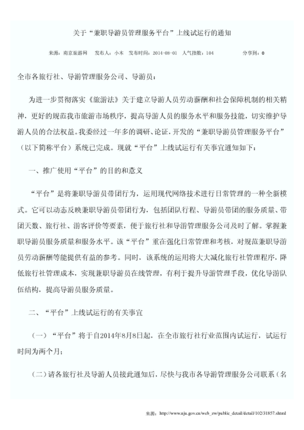 關于“兼職導游員管理服務平臺”上線試運行的通知(19.00KB)