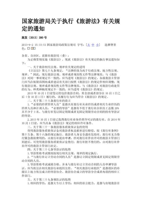 國(guó)家旅游局關(guān)于執(zhí)行《旅游法》有關(guān)規(guī)定的通知