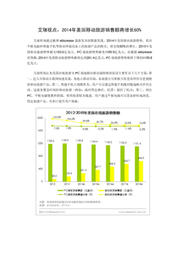 艾瑞視點:2014年美國移動旅游銷售額將增長60%(34.00KB)