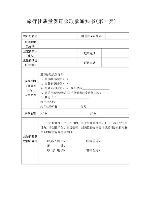 旅行社質量保證金取款通知書(旅行社撤銷_撤減分社_支取利息用)(32.50KB)