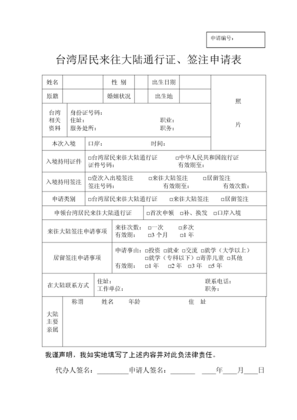臺灣居民來往大陸通行證、簽注申請表(36.50KB)