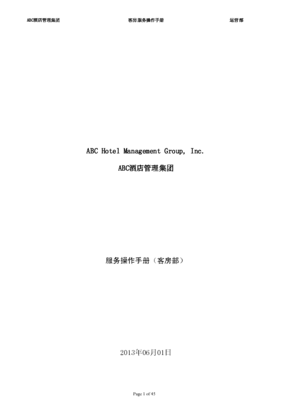 酒店管理客房__客房營(yíng)運(yùn)操作手冊(cè)(葉予舜)