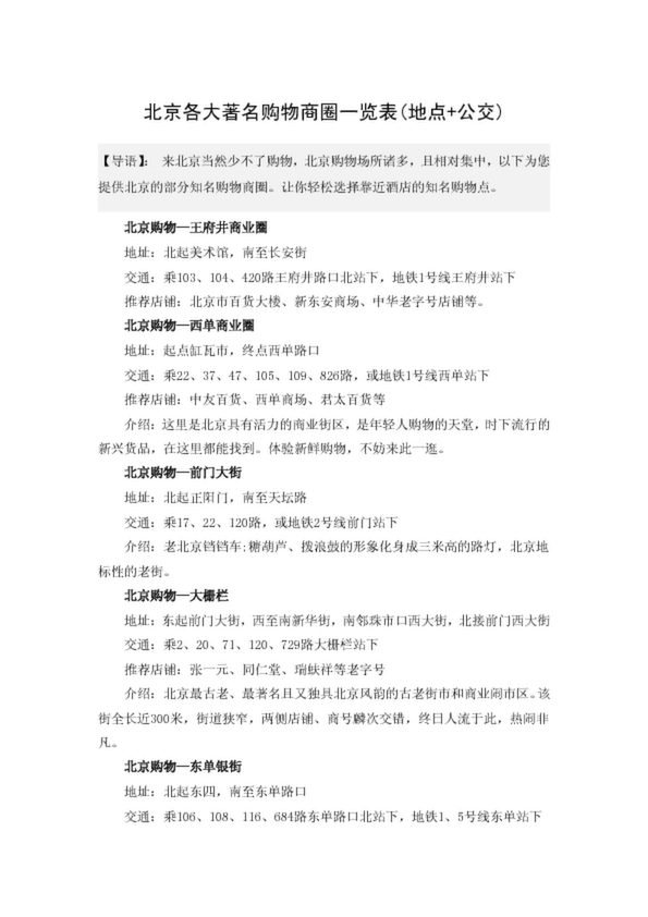 北京各大著名購物商圈一覽表(地點+公交)(35.00KB)