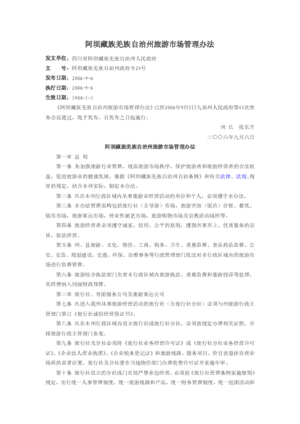 阿壩藏族羌族自治州旅游市場管理辦法