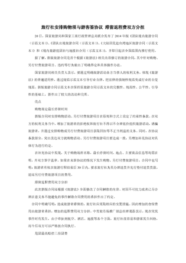 旅行社安排購物須與游客簽協議 滯留返程費雙方分擔(14.00KB)