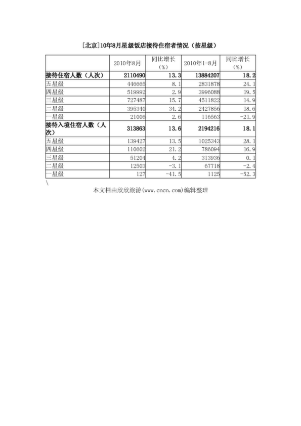 [北京]10年8月星級(jí)飯店接待住宿者情況(按星級(jí))