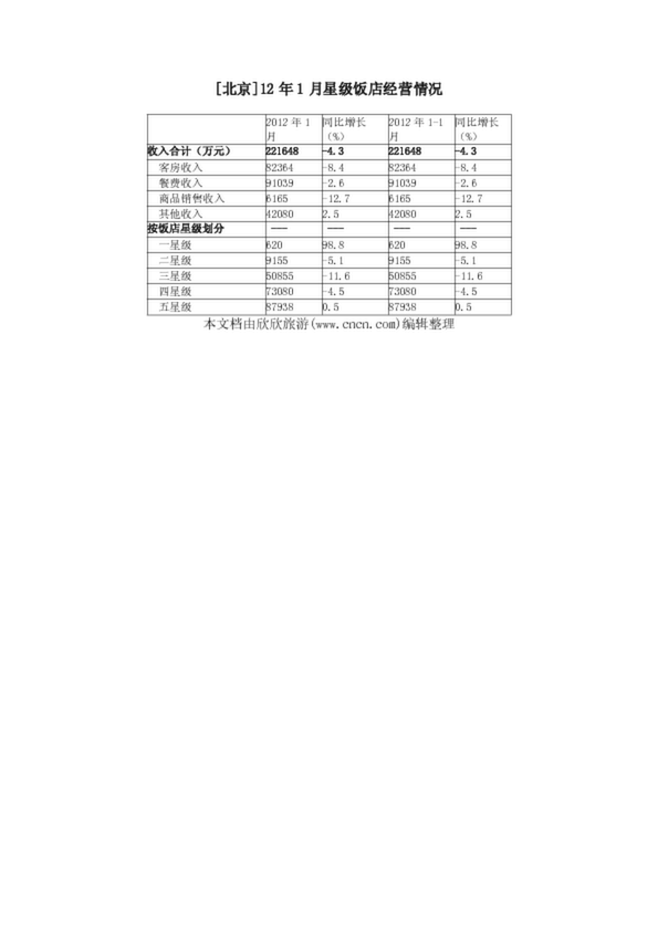[北京]12年1月星級(jí)飯店經(jīng)營(yíng)情況