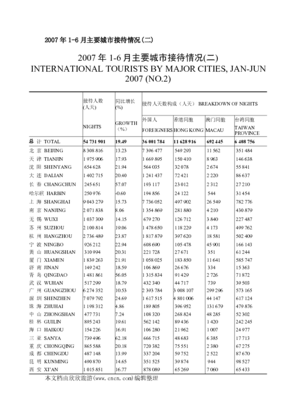 2007年1-6月主要城市接待情況(二)(0.16MB)