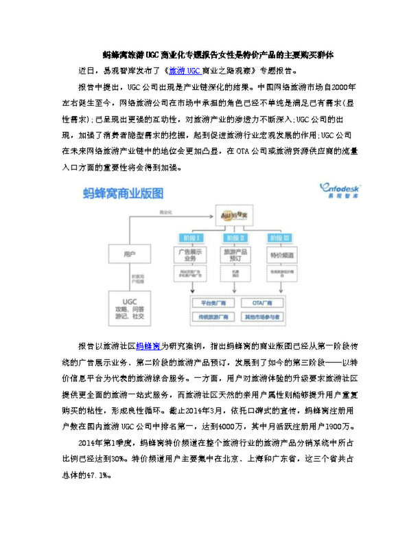 螞蜂窩旅游UGC商業化專題報告女性是特價產品的主要購買群體(0.90MB)