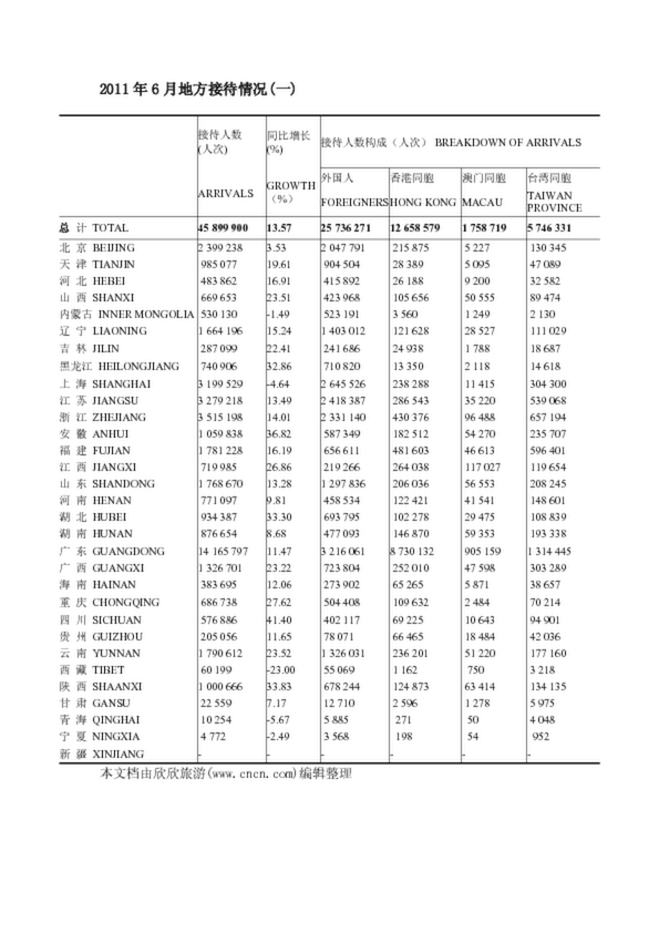 2011年6月地方接待情況(一)