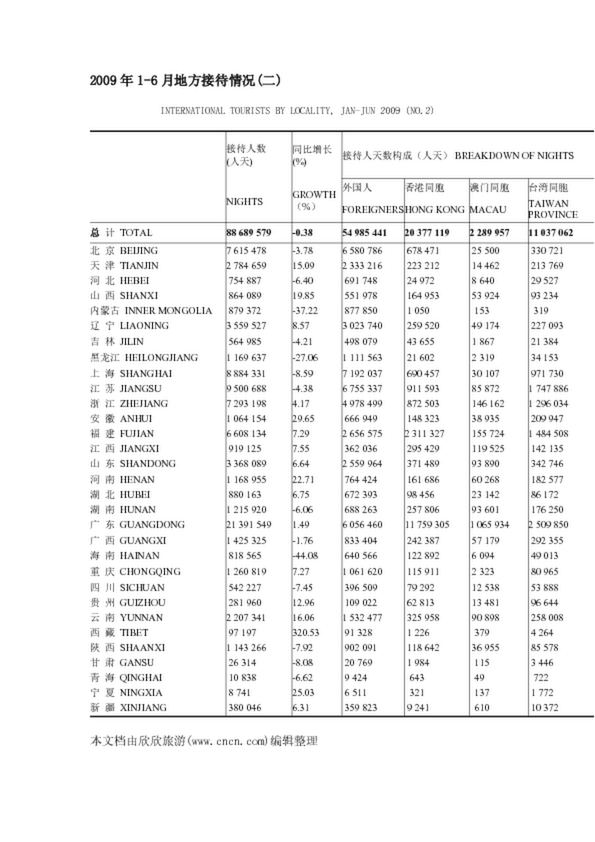 2009年1-6月地方接待情況(二)