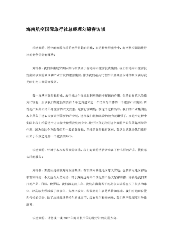 海南航空國際旅行社總經理劉錦春訪談(14.00KB)