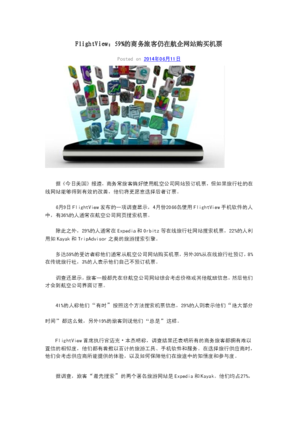 FlightView:59%的商務旅客仍在航企網站購買機票(56.00KB)