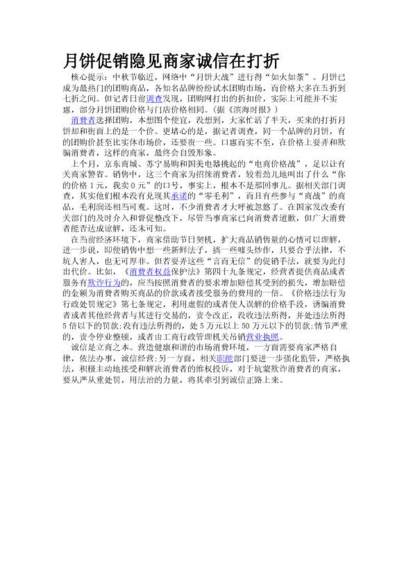 月餅促銷(xiāo)隱見(jiàn)商家誠(chéng)信在打折
