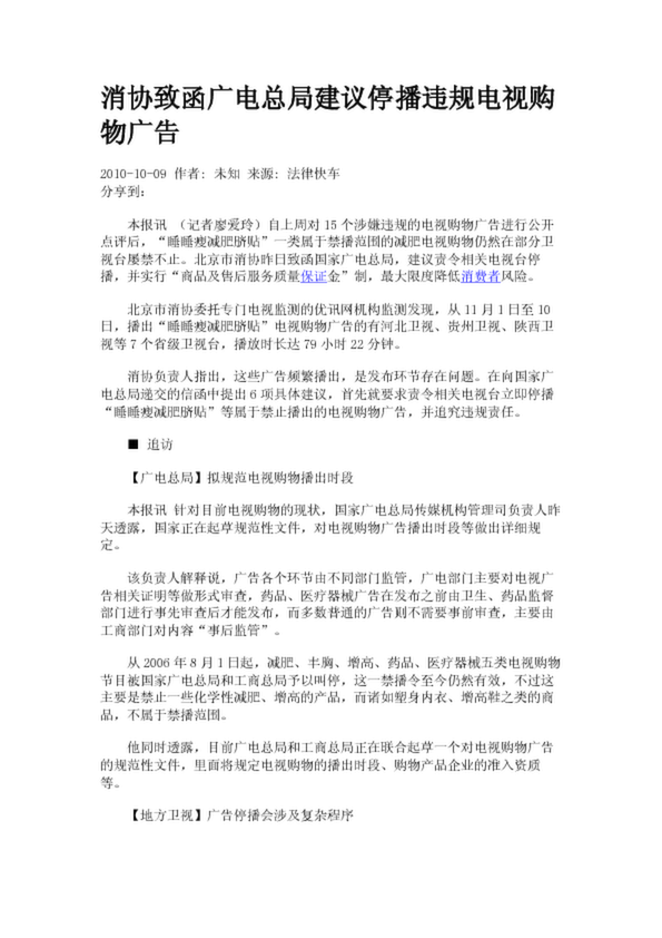 消協致函廣電總局建議停播違規電視購物廣告